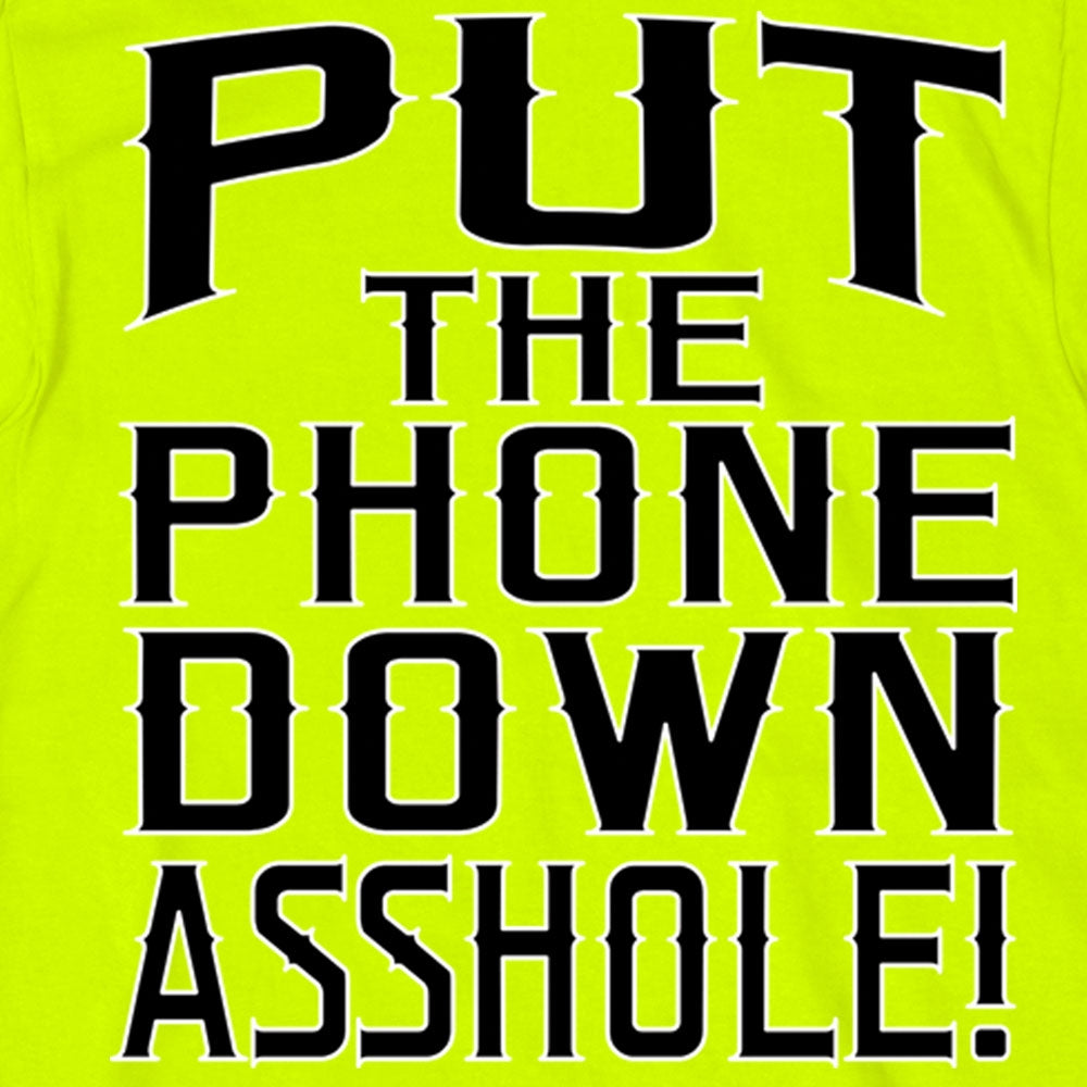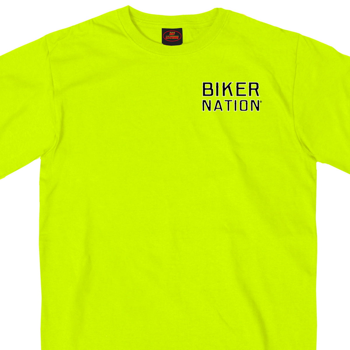 This Hot Leathers Exclusive T-Shirt in safety green proudly boasts "BIKER NATION" on the left hand front chest area and really gets the point across to reckless drivers by boldly displaying on the back side "PUT THE PHONE DOWN ASSHOLE!". Snag this exclusive T-Shirt today and join Biker Nation.