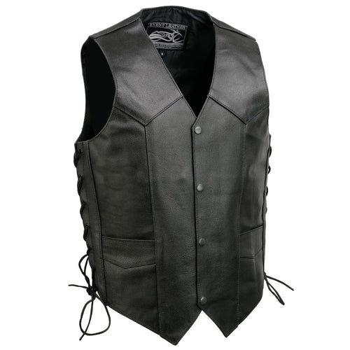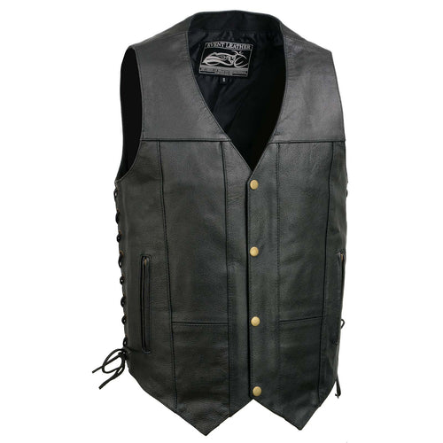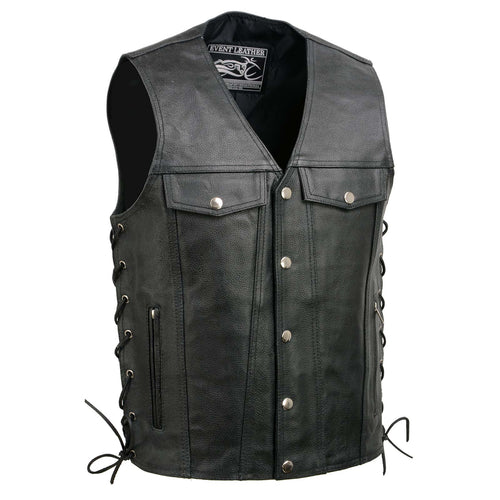 Event Leather EL5315 Black Motorcycle Leather Vest for Men w/ Side Lace- Riding Club Adult Motorcycle Vests