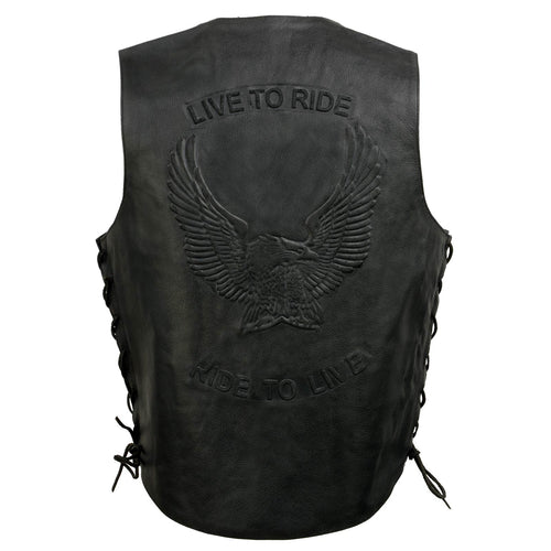 Event Leather's ELM3900 Men's 100% Genuine Motorcycle Leather Vest | Biker Vests with Embossed Eagle | Live To Ride