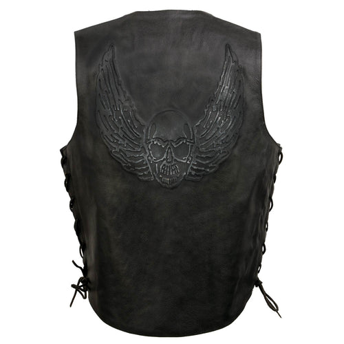 Event Leather's ELM3905 Men's 'Mayhem' 100% Genuine Motorcycle Leather Vest | Biker Vests with Embossed Skull & Wing