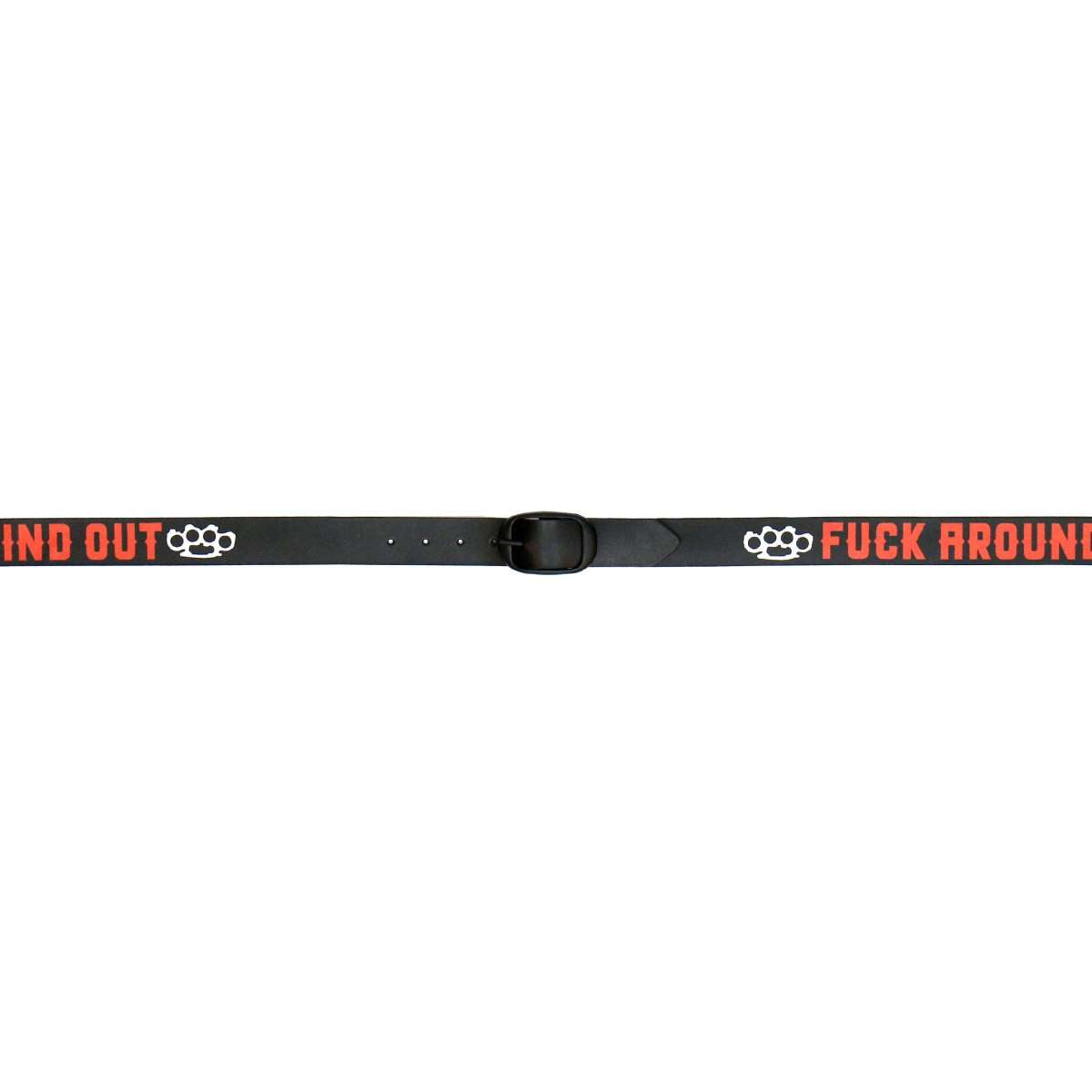This F*** Around Find Out Black and Orange Leather Belt will allow you to show off your unique personality. 100% Genuine leather belts made of premium cowhide top grain leather. Thick, soft, and crack resistant. A reliable choice for riders who need a biker belt that can hold up to not only the demands of the road but also stylish enough to wear anywhere. This belt has a dual easy snap button removable buckle, allowing you to easily transition your look whenever you see fit.