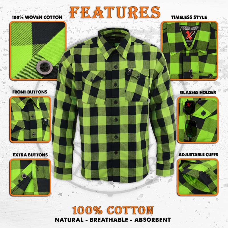 Milwaukee Leather MNG11666 Men's Black and Red with Yellow Long Sleeve Cotton Flannel Shirt