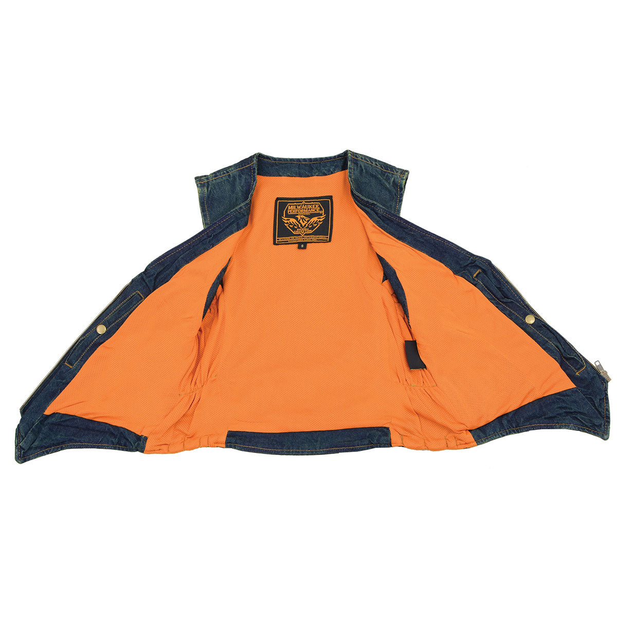 Milwaukee Leather MDL4010 Women's Blue Zipper Front Denim Vest with Side Stretch