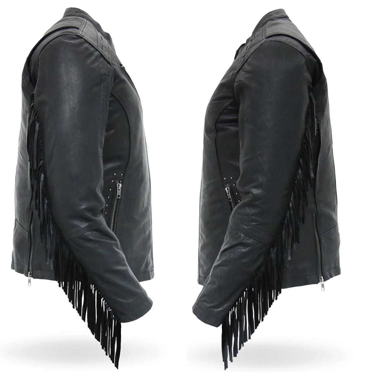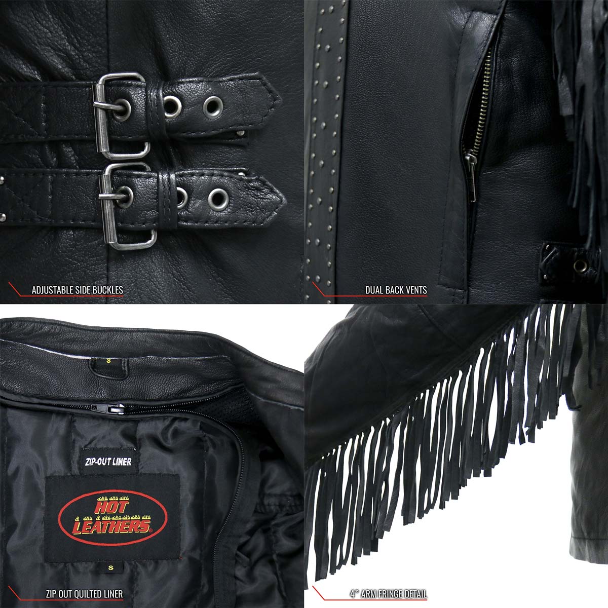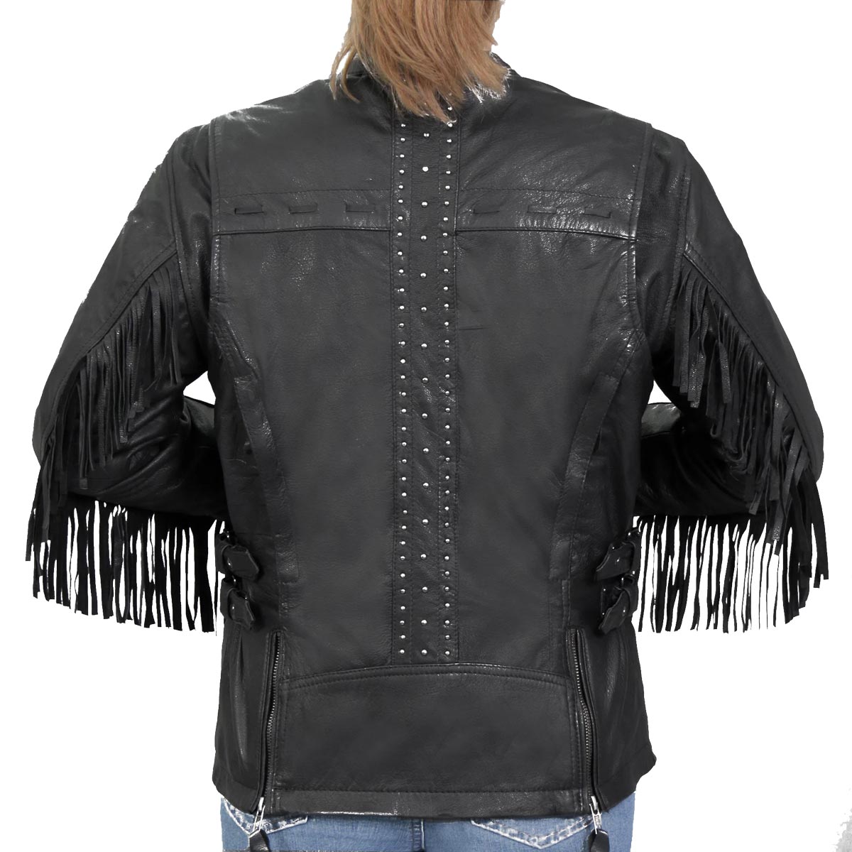 Hot Leathers JKL1028 Studs and Fringe Ladies Black Carry Conceal Leather Jacket