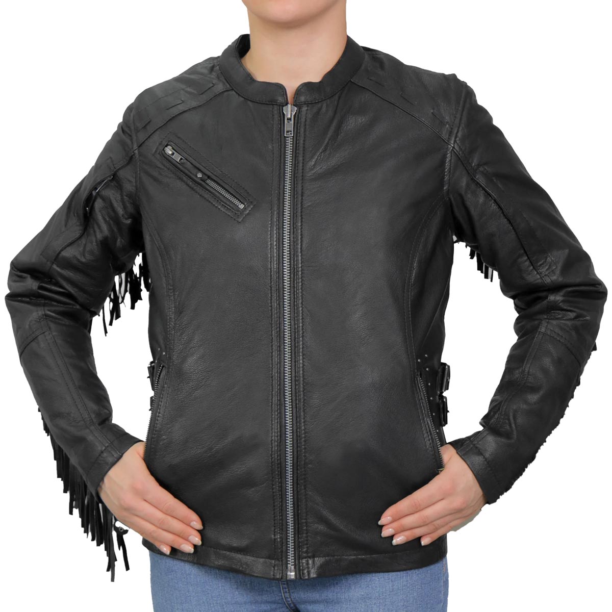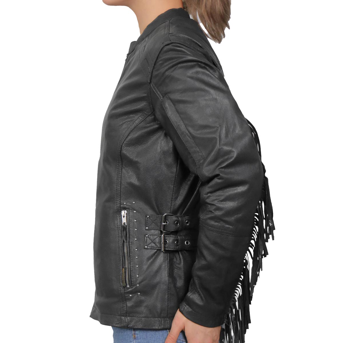 - Ladies lightweight leather fringe jacket