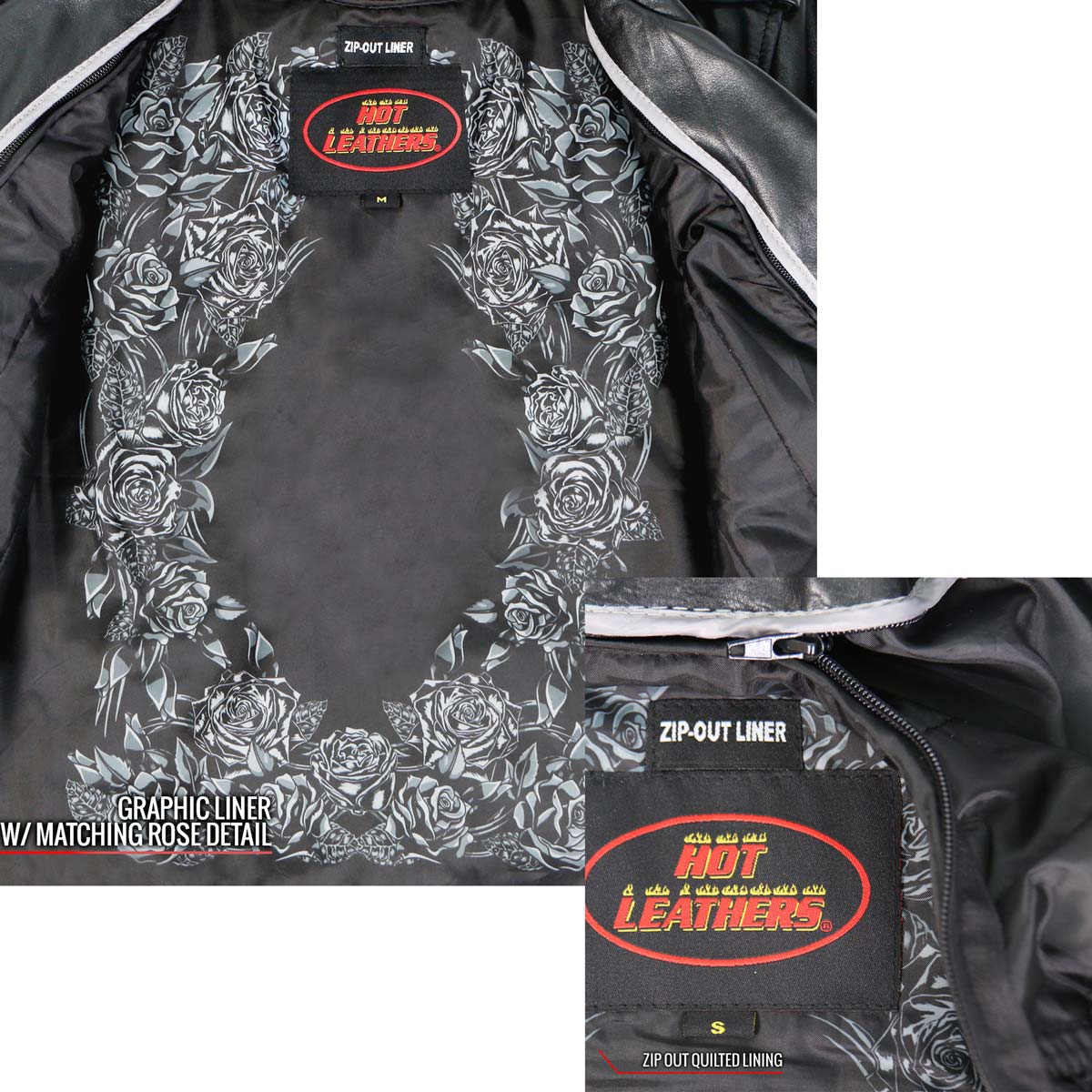 - Matching Rose Detail Zip Out Quilted Lining