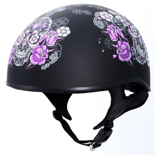 Half-helmets cover the entire top of the head and generally cover part or all of the ears for most riders. While they cannot offer all of the protection that other helmet types can, all of our half helmets are still DOT approved and tested thoroughly by the Federal Government Department of Transportation to ensure the most possible protection for coverage area. Almost every half lid we carry at will additionally feature a small visor for the frontal area to block some incoming sun..