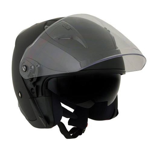 Open-face, or 3/4 helmets, cover the head completely and most of the chin and cheek area for almost all motorcycle riders, and give a great deal of safety and protection while still giving a great deal of comfort on hot days. Most open face helmets still offer additional ventilation options and some have attachable shields as well, adding a decent amount more comfort and protection. If you're interested in an open face that does not include a face shield, be sure to grab some sunglasses or goggles, as some states require wrap-around eyewear by law.