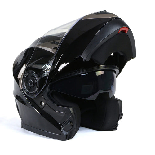 Modular Helmets look almost identical to full-face, but are actually a mixture of full-face and open-face, with a front chin-guard and visor that flips up to expose the whole of your face. While not offering as much protection as full face due to their flip mechanisms, they still offer a large amount of safety for all riders. Some modular motorcycle helmets allow the rider to remove the whole front piece and reattach it later as needed. Some also include separate visors for when the front piece is flipped up so that the rider is still protected from glaring sun while also having maximum airflow.