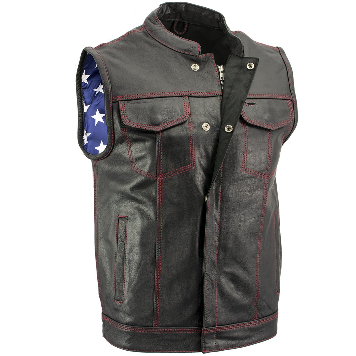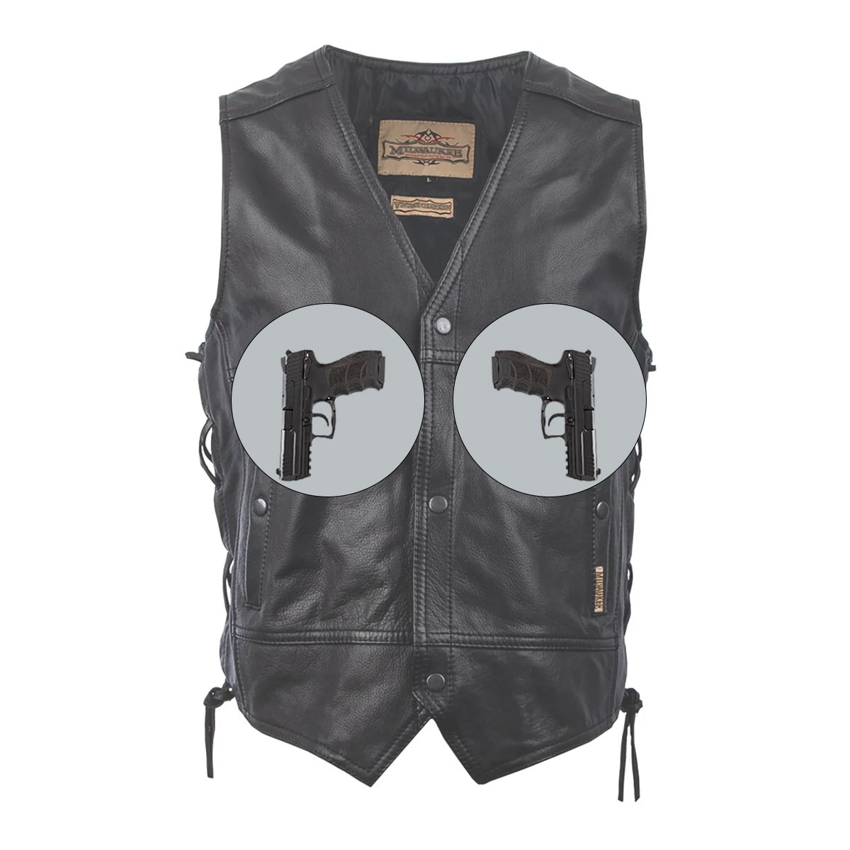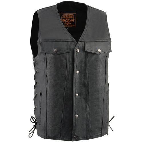 Motorcycle vests portray that image of the classic biker look, with the cool leather chaps, fingerless gloves, riding down an open road with no cares or worries to be had. A black leather biker vest is a great addition to any Harley rider's gear collection, while a high-viz will keep you safe and sound at night or in the rain. So whether you're looking for matching MC biker vests for your charter or just want something that matches your boots and chaps, LeatherUp has the right motorcycle vest for you, at the lowest prices online. LeatherUp is also one of the few online stores that carry Heated Vests, and Concealed Carry Vests. On our line of Concealed Carry Vests you can always make sure you have your gun or weapon of choice ready at a moments notice. Also check out our massive motorcycle jackets collection to compliment your vest.