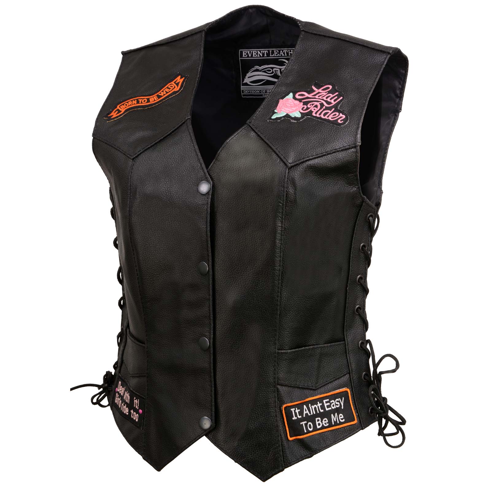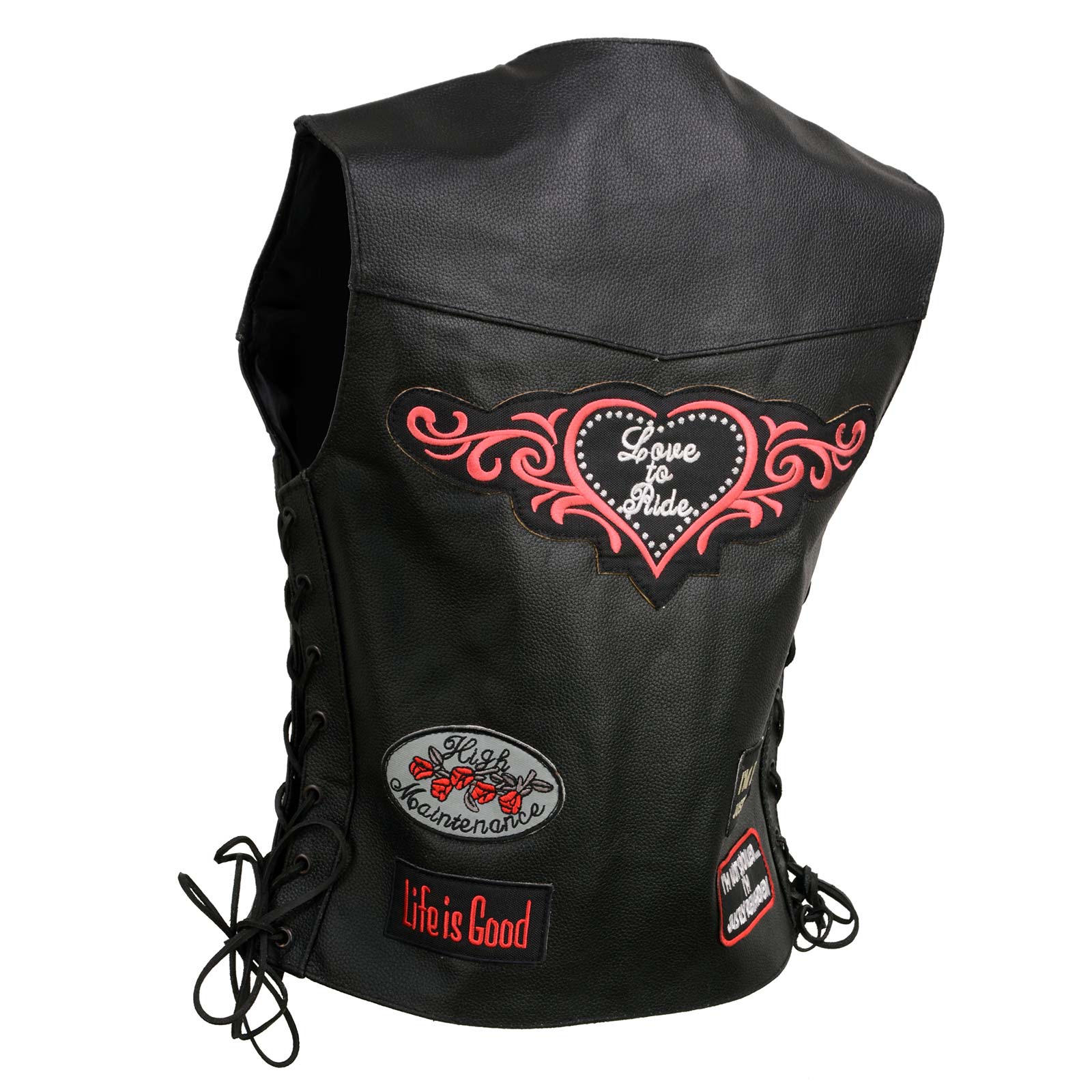 - Premium Thick Leather: Our 100% leather motorcycle vest for women is crafted using premium-grade 1.1-1.2mm leather, providing superior protection and durability and perfect for hot summer days. The leather construction ensures optimal resistance against abrasions and adds an extra layer of protection during your rides. Our Vest is adorned with 9 meticulously designed patches on the front and back are perfect for any rider and making a must have in your wardrobe.