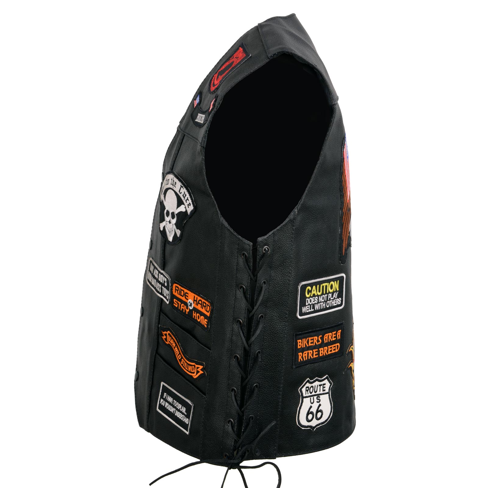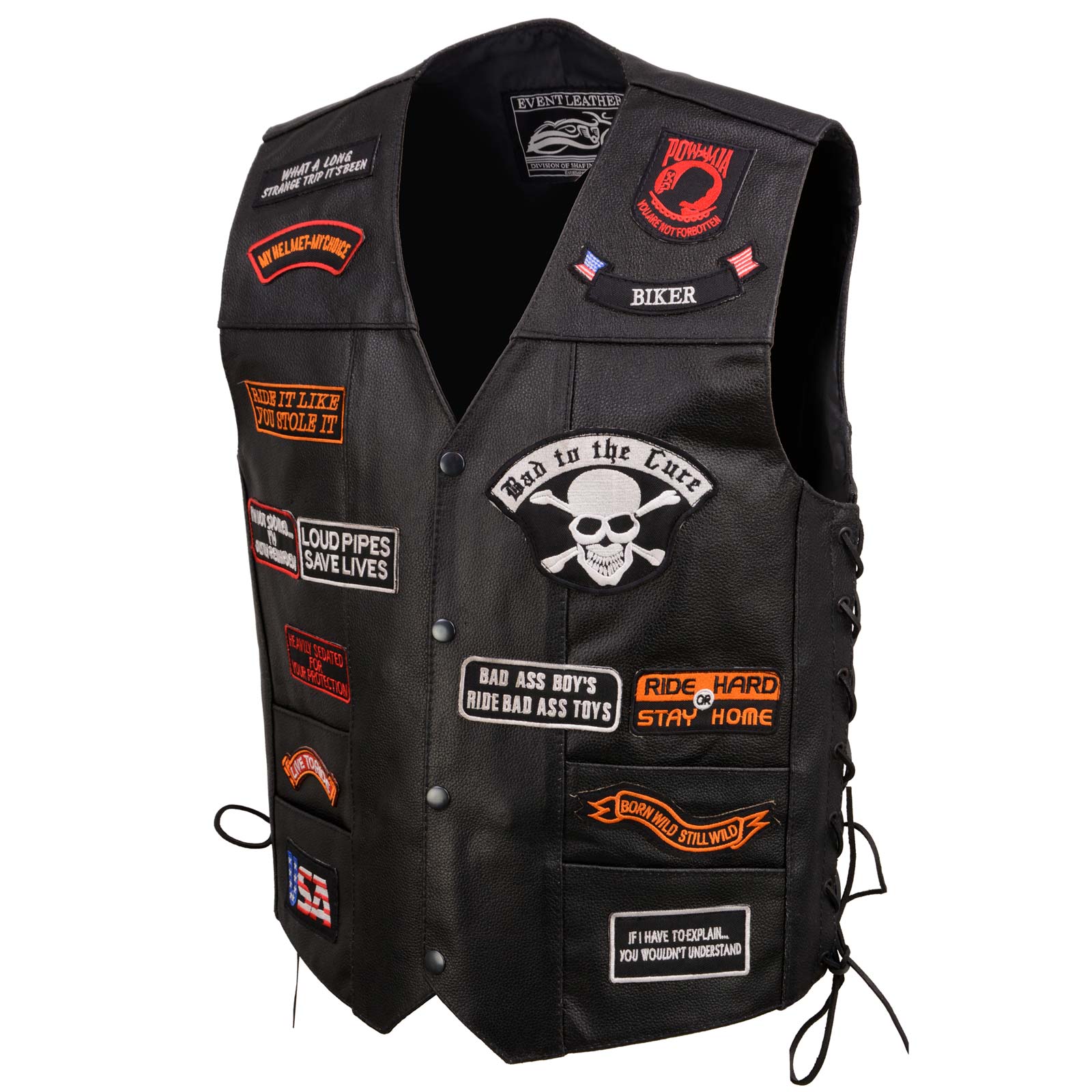 - Side Lace: Event Leather V-Neck Western Vest Motorcycle Gear That Features a Classic Design with A Snap Front Closure. It’s Important to Wear the Right Protective Clothing That Fits Your Specific Body. Our Apparel Includes a Side Lace for A Customized and Best Fit. Please Use the Following Body Measurement Size Guide to Choose the Size That Is Closest to Your Body