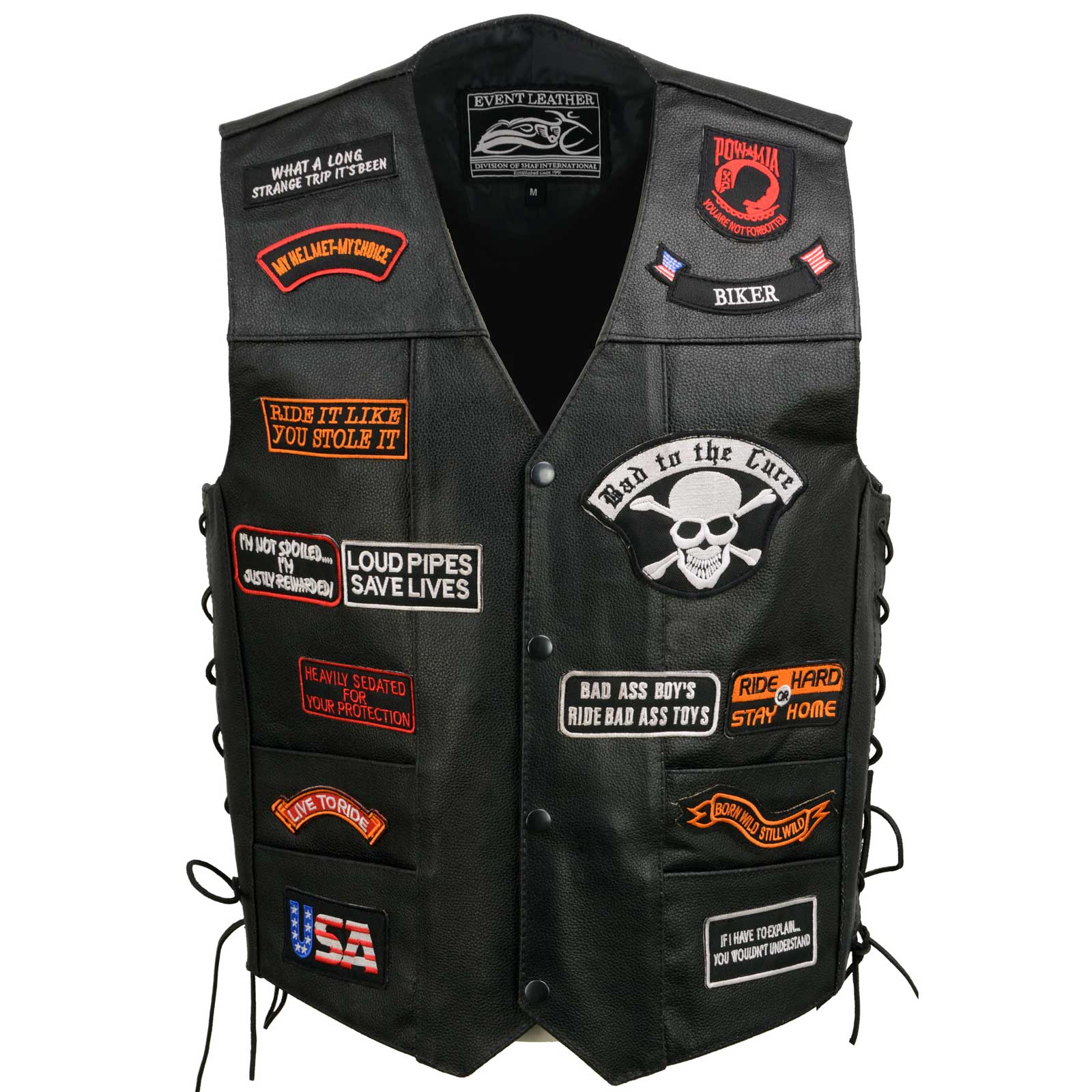 - Pre-Patched: 23 Assorted Patches Adorn The Vest on the Front and Back