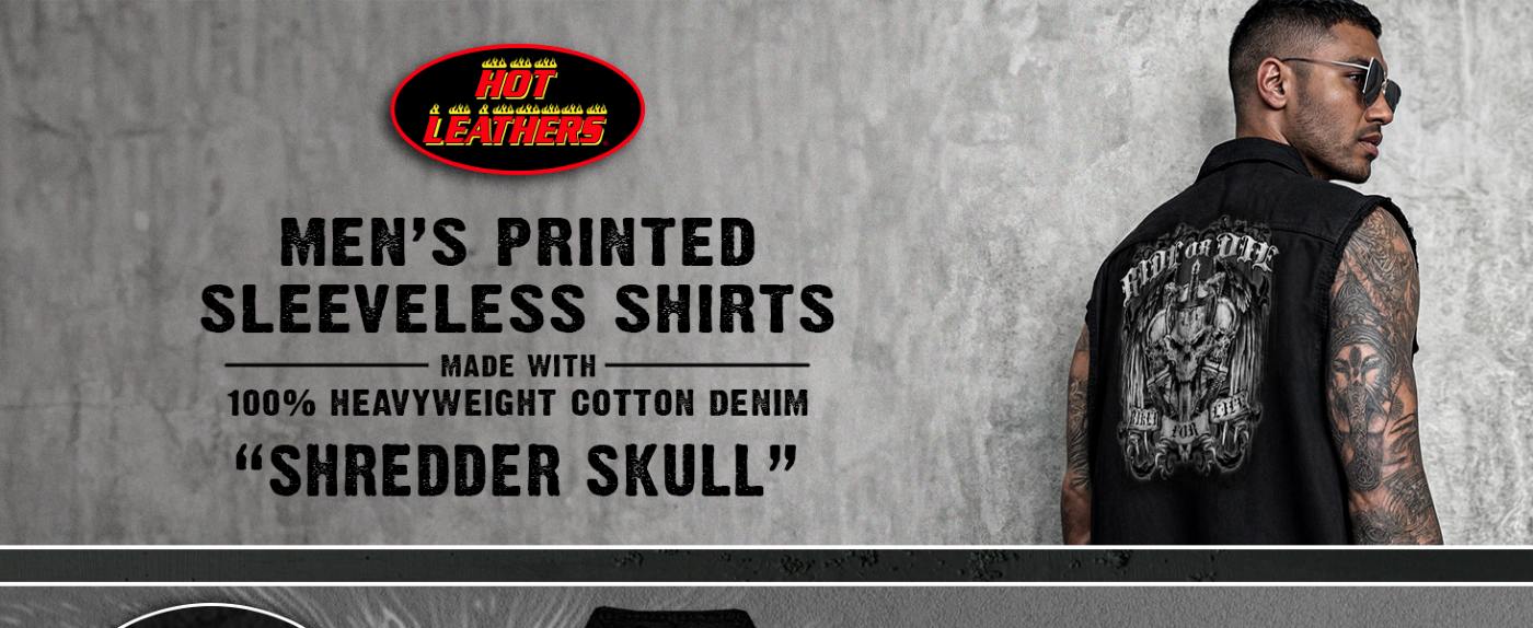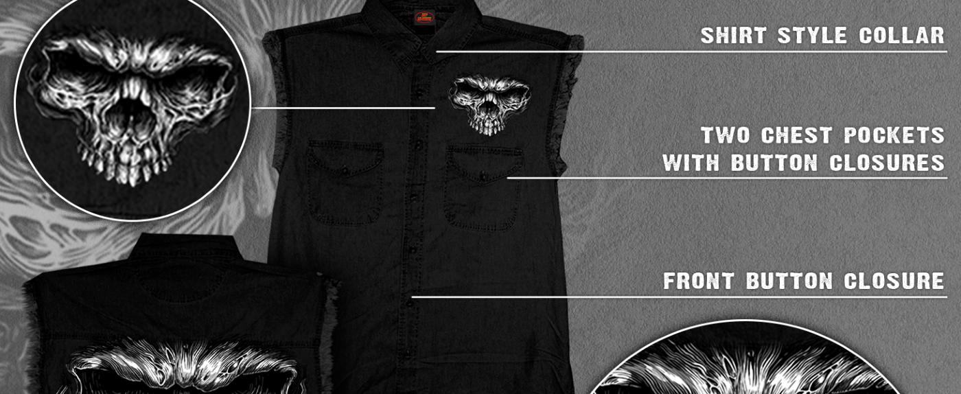 Hot Leathers GMS3492 Men’s Black and Green Shredder Skull Sleeveless Flannel Shirt