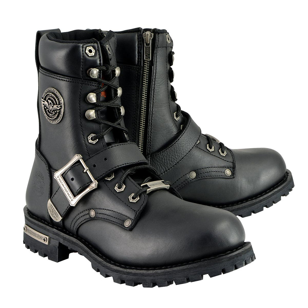 Milwaukee Leather MBM9076 Men’s Black Tactical Logger Leather Boots with Buckle Enhancement