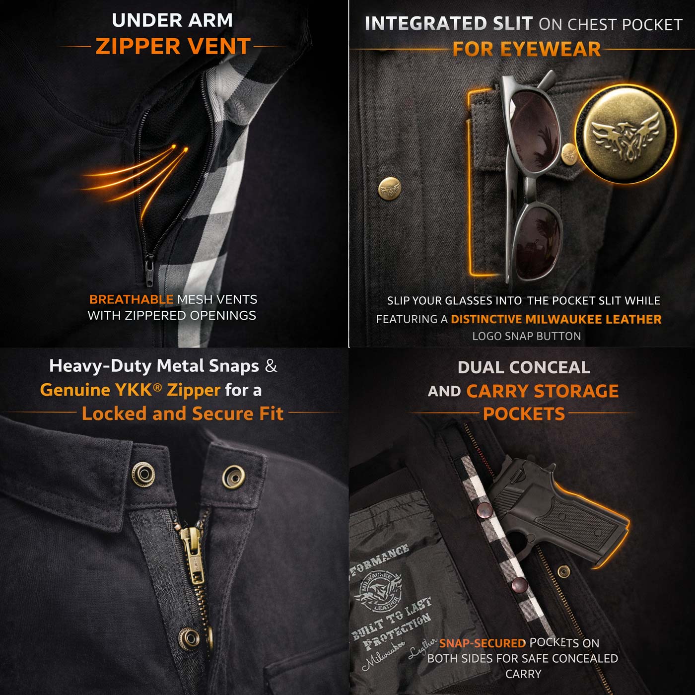 - 1 × Milwaukee Leather MPM1673 Men’s Two-Tone Armored Flannel (solid front / plaid back)