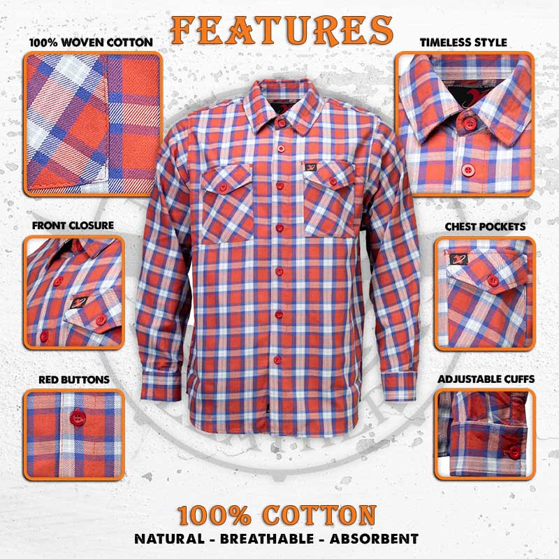 Milwaukee Leather MNG11652 Men's Black Grey and Red Long Sleeve Cotton Flannel Shirt