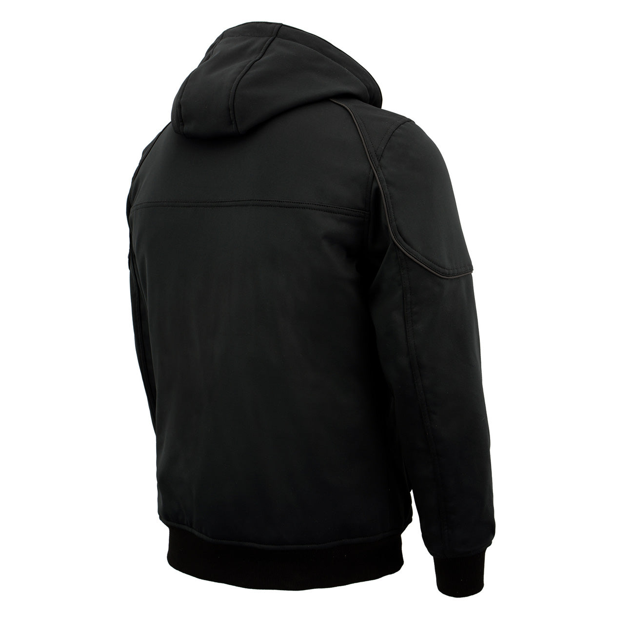 - Detachable hood with drawstrings, inside media pocket with wire feed, inside drop pocket