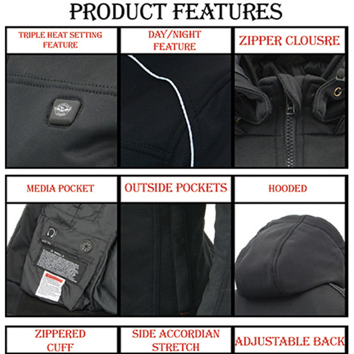 A winter-ready soft shell built for riders and outdoor adventurers. The MPM1761SET delivers heat on demand from a powerful 7.4V 10000mAh rechargeable battery. Wear it powered for all-day warmth or unplug and enjoy the rugged protection of a thick nylon shell with reflective night-ride detailing.