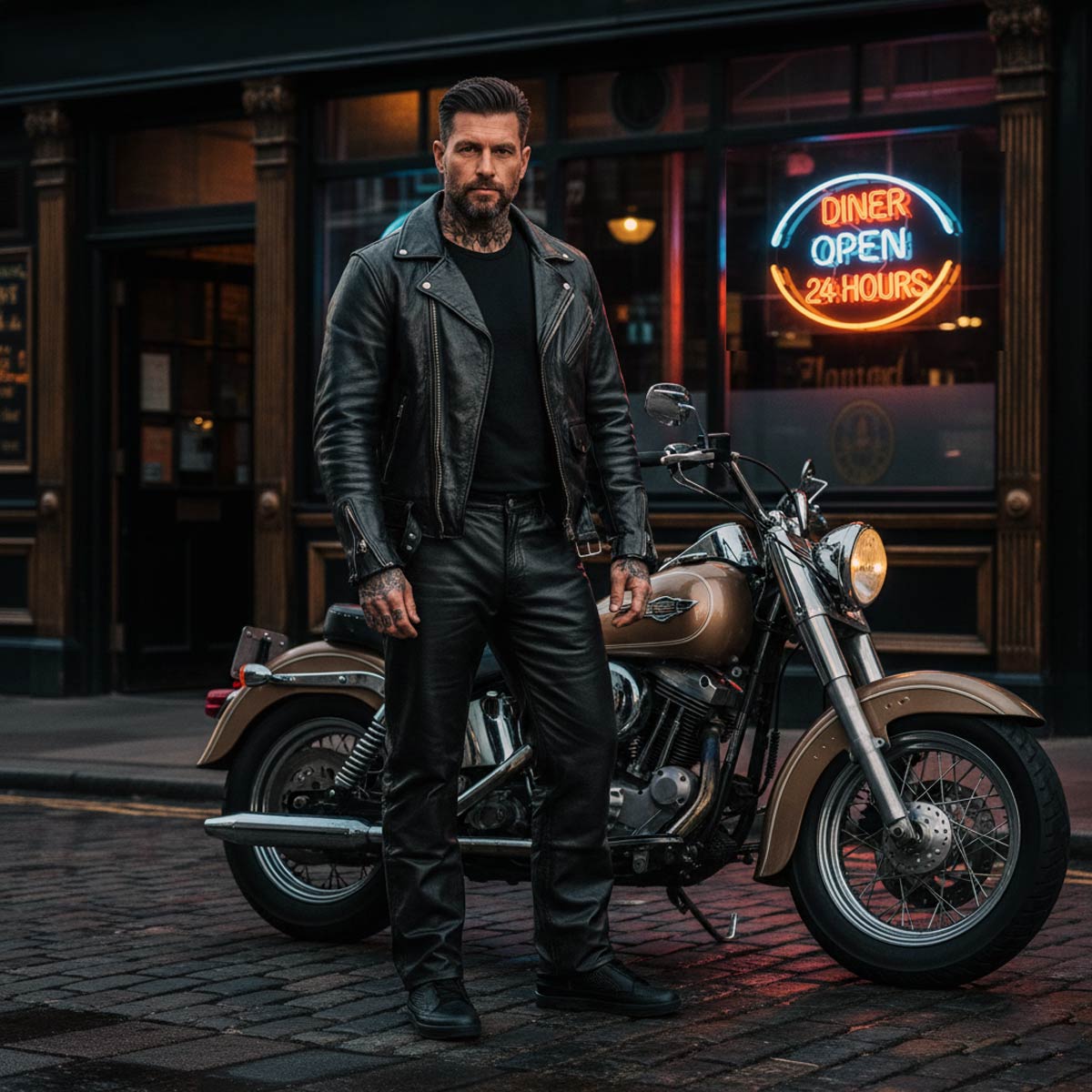 - Men’s “Branson” casual black leather biker pants