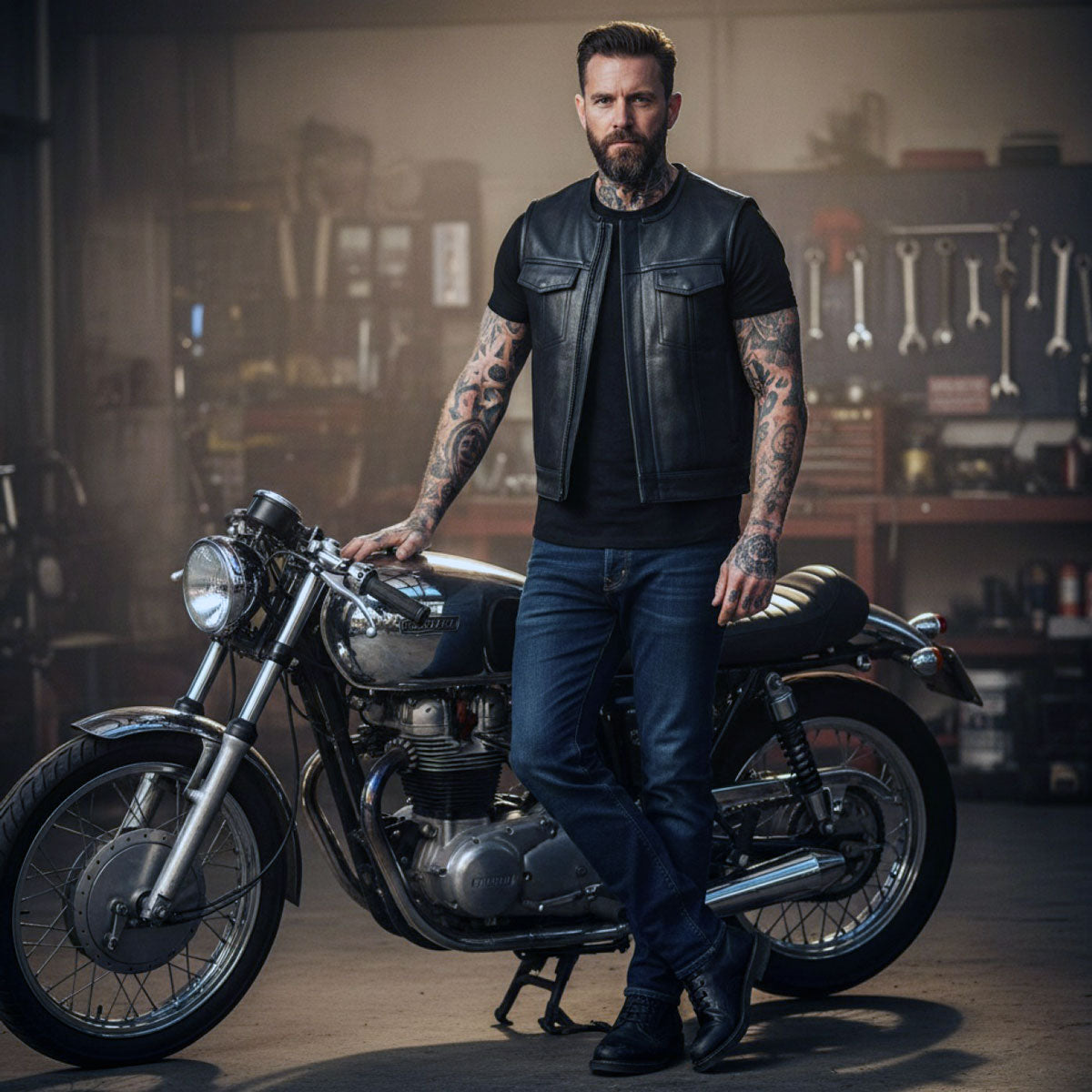 Clean lines, tactical utility, and a fit that knows the road—The Low-Key Leather Vest is a modern club classic designed for riders who want rugged function with a refined edge.