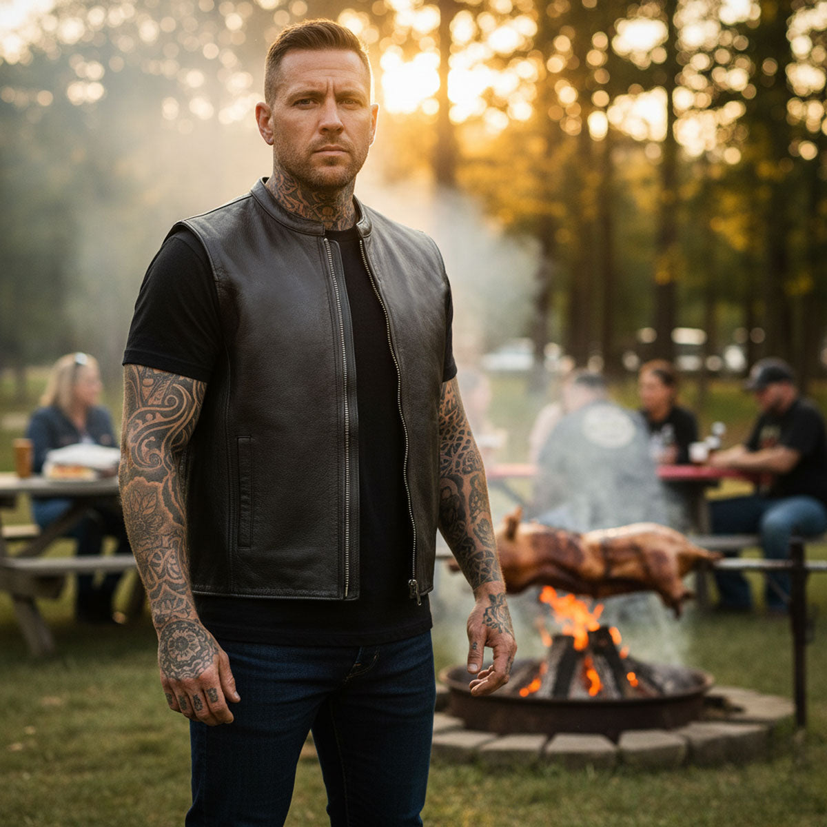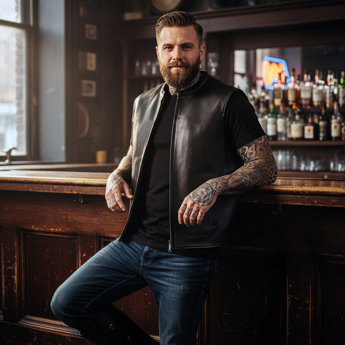 The Rocker Leather Vest delivers unfiltered biker energy with a sharp, club-style silhouette and no unnecessary distractions—just performance, protection, and purpose. Made from 1.2–1.3mm full-grain naked cowhide, this vest is built to handle the road and designed for clean, patch-friendly customization with its single-panel back and chest-pocket-free design.