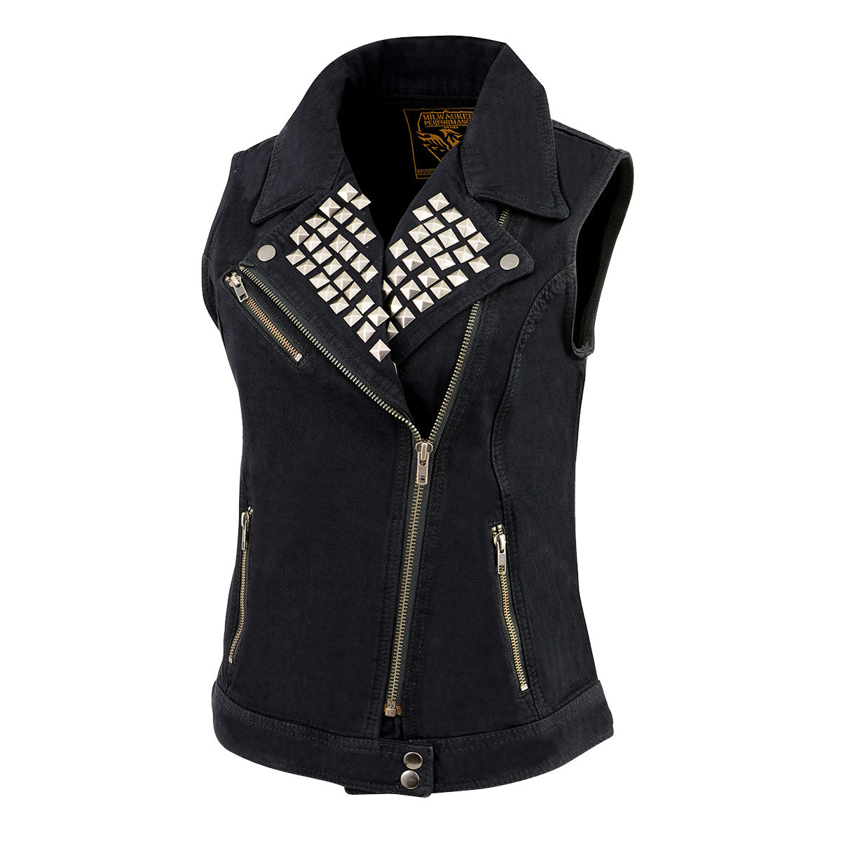 Milwaukee Leather MDL4030 Women's Blue Denim Zipper Front Motorcycle Vest with Studded Spikes