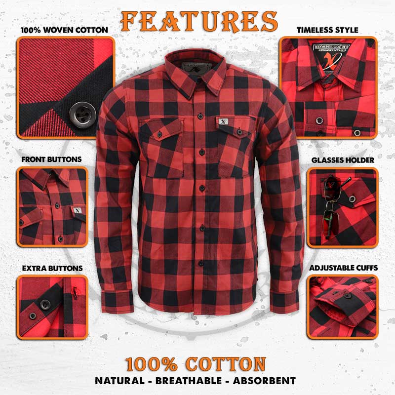 Milwaukee Leather MNG11652 Men's Black Grey and Red Long Sleeve Cotton Flannel Shirt
