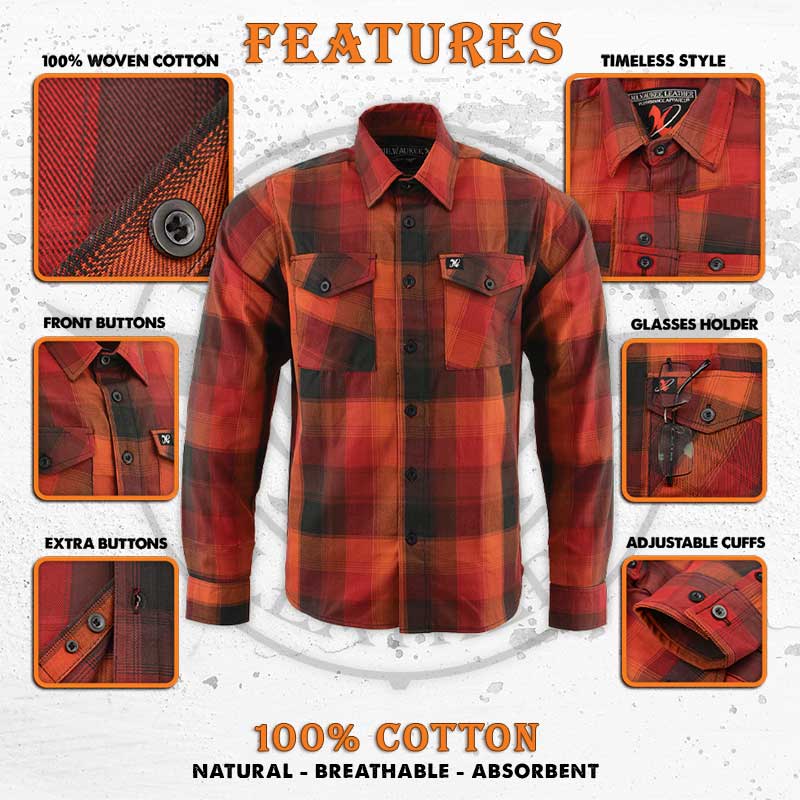 Milwaukee Leather MNG11665 Men's Black and Red Long Sleeve Cotton Flannel Shirt