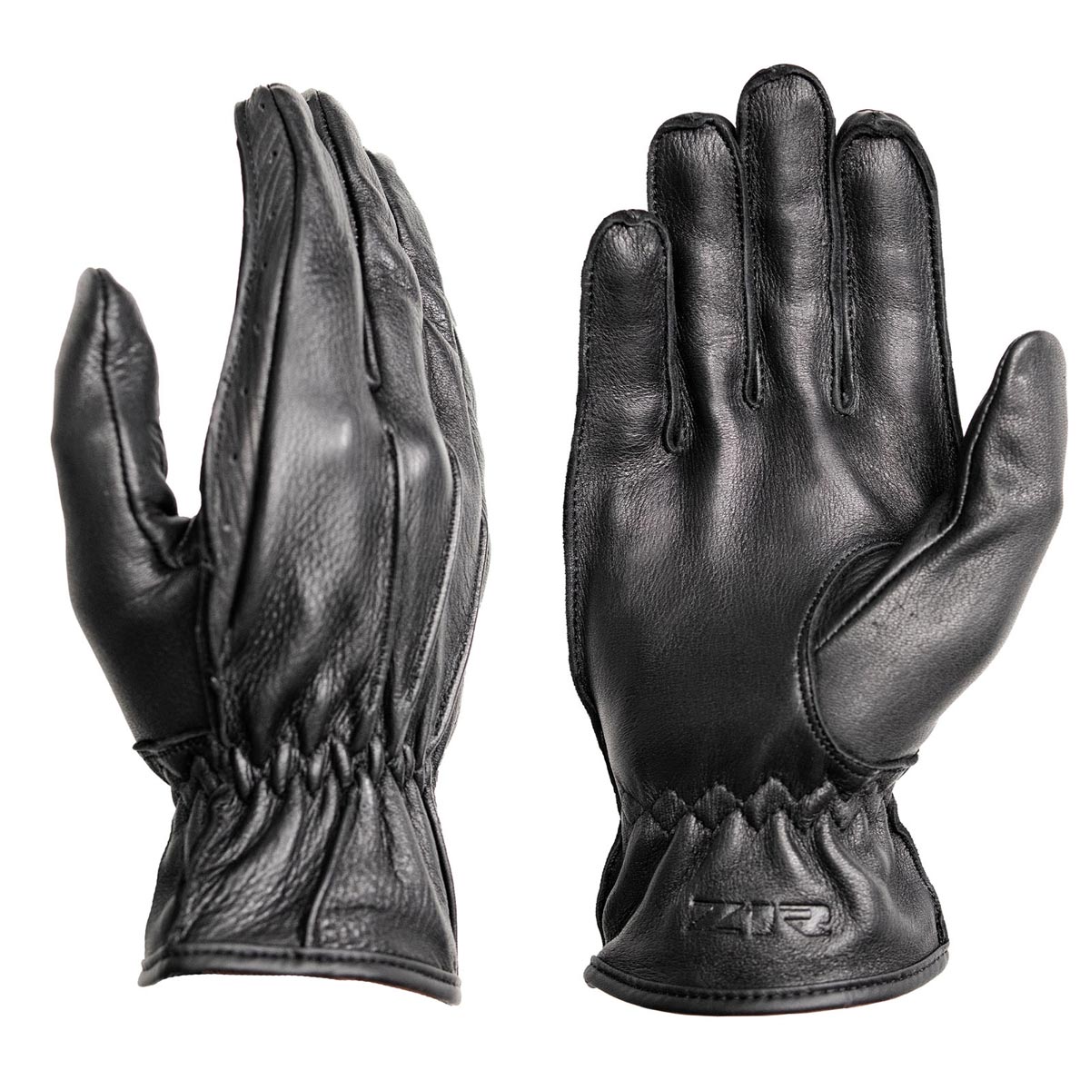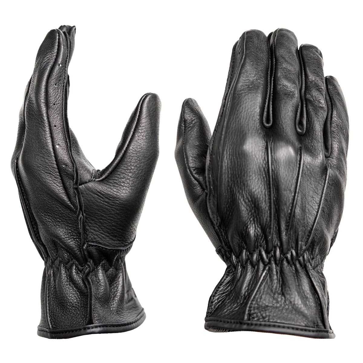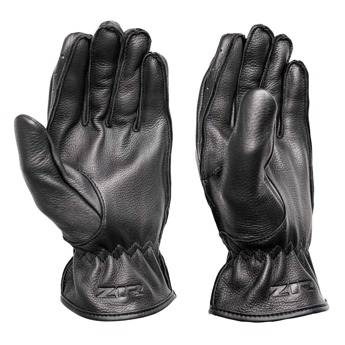 Z1R Men's Black Premium Deerskin Leather Motorcycle Riders Gloves w/ Cinch Wrist Closure